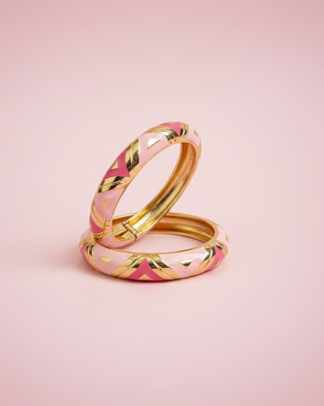 The Pink Bliss Bracelet – Set of 2 adds a soft, elegant charm to your everyday jewellery collection. Featuring pastel pink enamel with subtle geometric accents and a polished gold-tone finish, this set is designed to feel fresh, feminine, and effortlessly stylish.